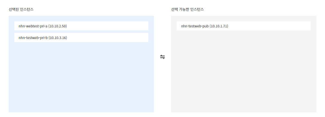 로드밸런서를 통해 부하를 나눌 인스턴스를 선택한다. 단 추가할 수 있는 인스턴스는 로드밸런서가 연결된 VPC로 제한 되며 인스턴스는 로드 밸런서 생성 후 추가 연결이 가능하다.