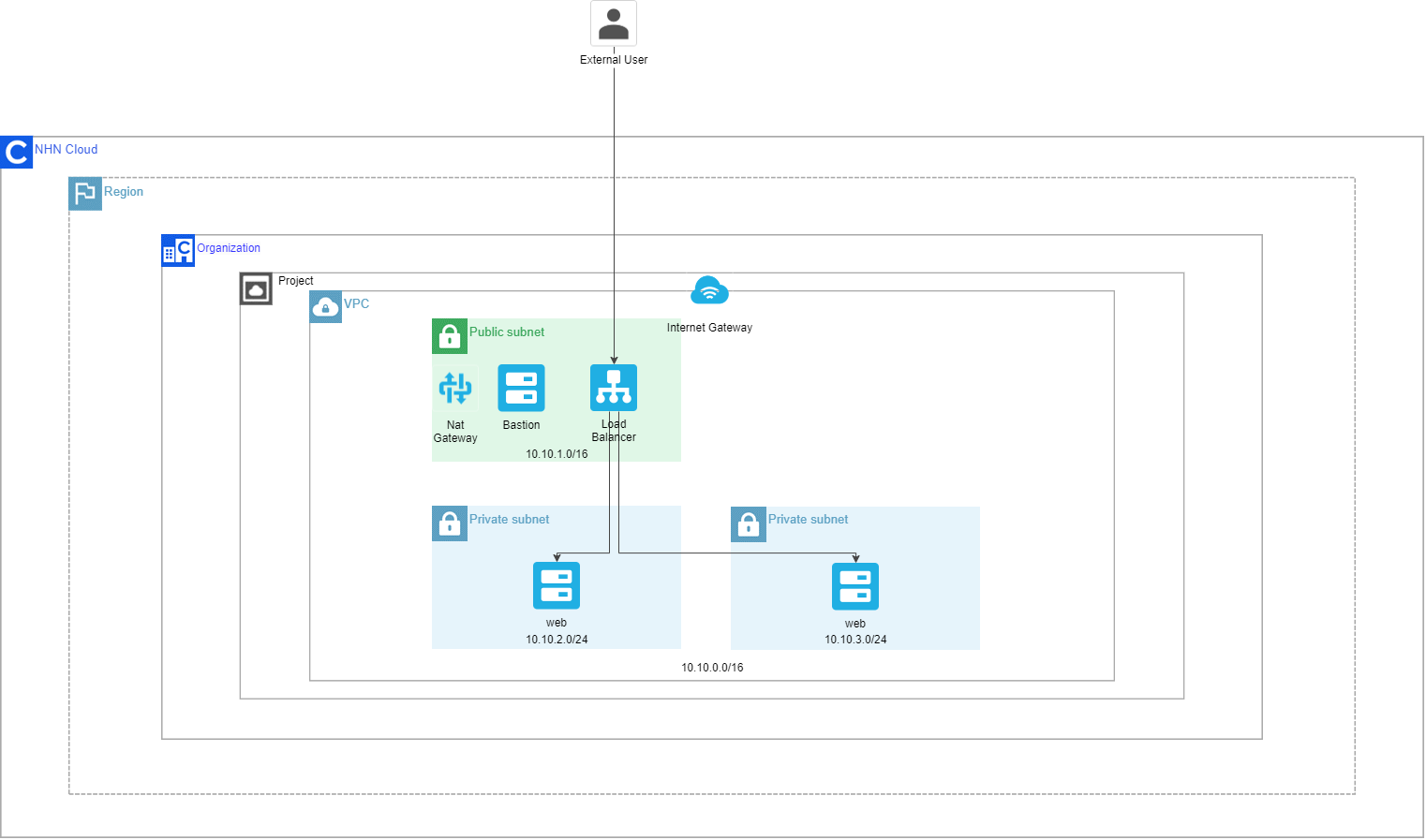 NHN Cloud의 로드밸런서 서비스는 외부 유입 트래픽에 대한 부하를 여러 대의 인스턴스로 분산시켜 준다.