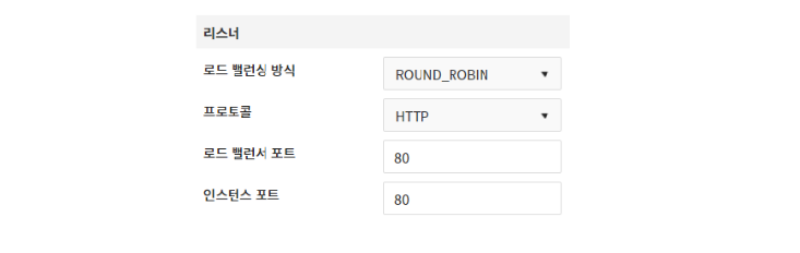 프로토콜을 통해 접속 프로토콜 방식에 따른 기능을 선택할 수 있고 로드밸런서 포트 및 인스턴스 포트를 통해 로드밸런서로 수신할 포트와 인스턴스로 전달되는 포트 번호를 지정할 수 있다.