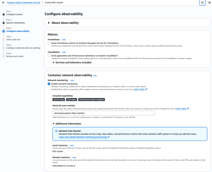 CloudWatch Network Flow Monitor는 Container Network Observability의 백엔드 역할을 수행합니다.