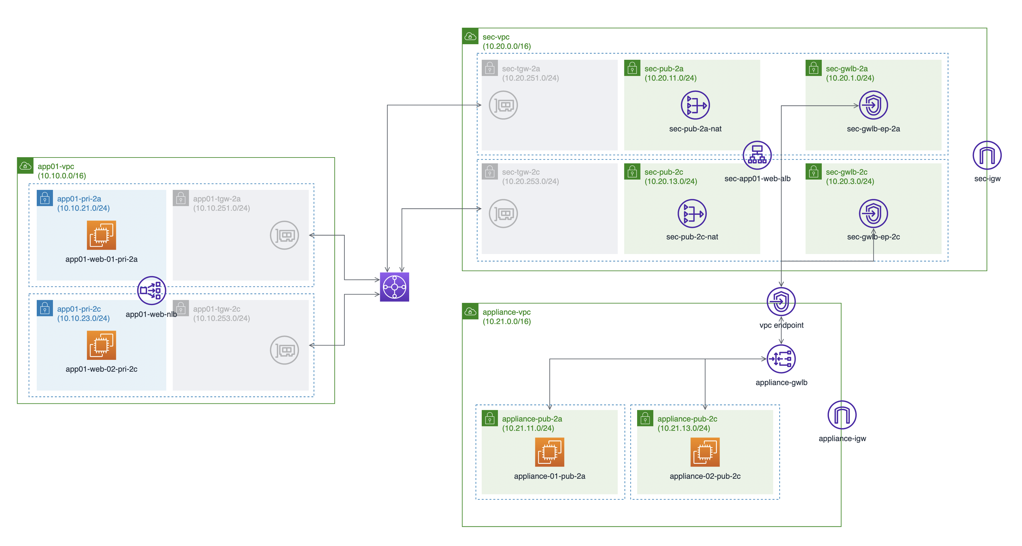 - VPC에서 외부 전송 트래픽에 대해 Transit Gateway를 기반으로 구성합니다.