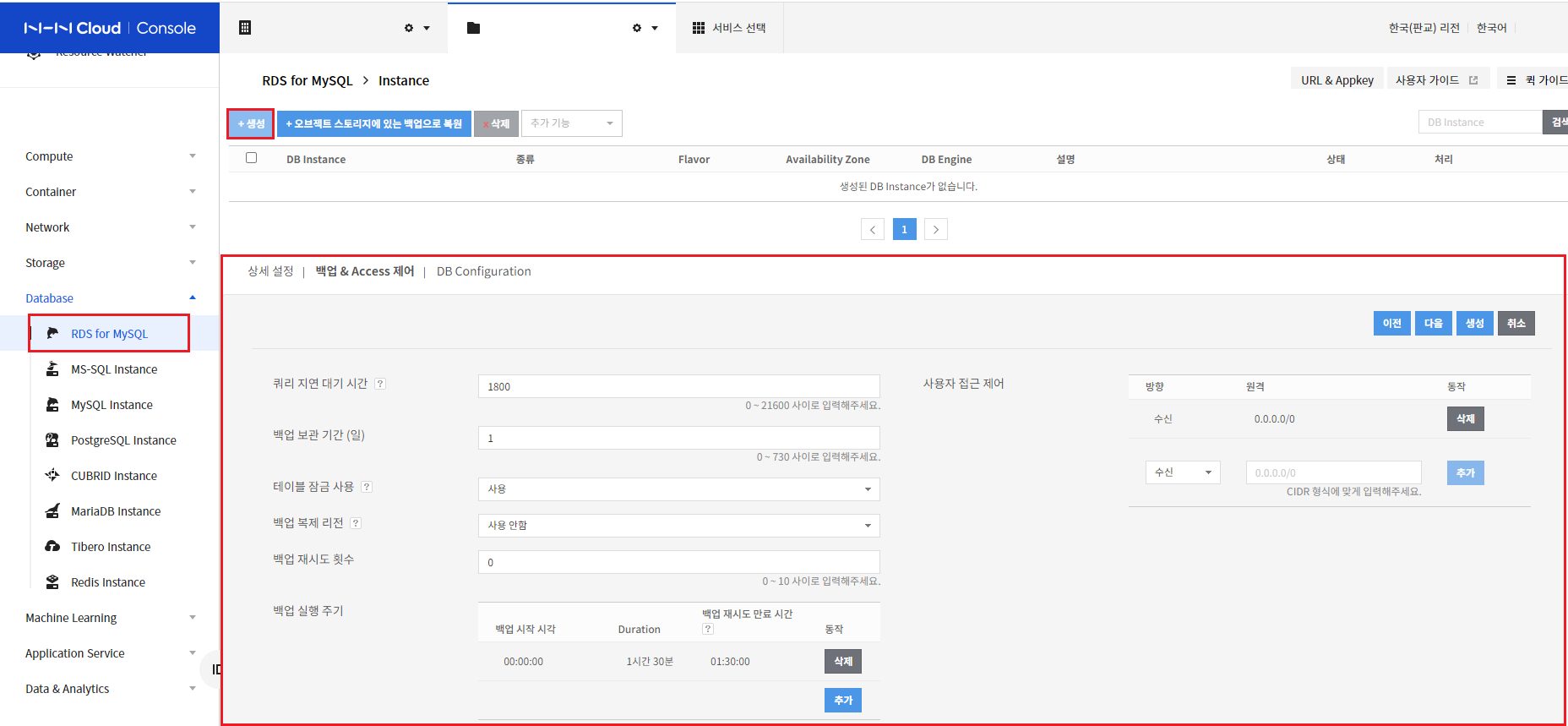 본 내용에서는 RDS for MySQL의 생성 방법에 대한 내용을 설명합니다.