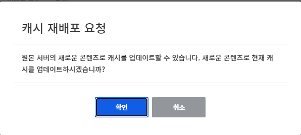 캐시 재배포를 진행하면 요청한 콘텐츠의 오래된 캐시 데이터를 삭제하고 원본 서버에서 새 원본 파일을 다시 캐시하게되어 캐시 만료 시간을 기다리지 않아도 된다.