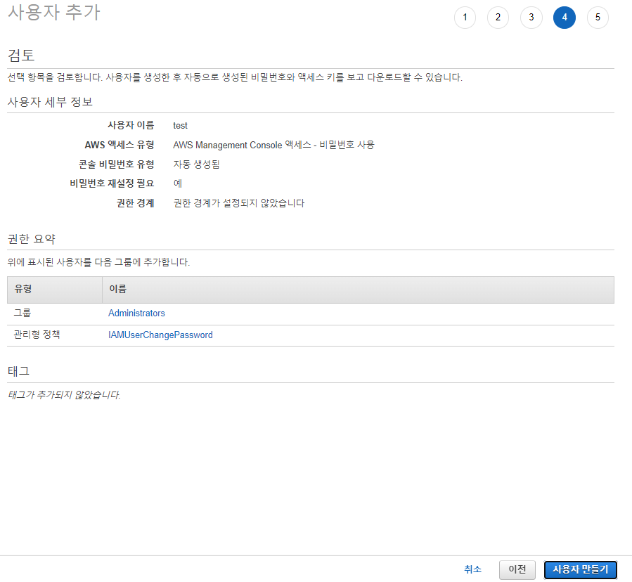 입력했던 내용이 잘 적용되어 있는지 내용검토 후 사용자 만들기 선택