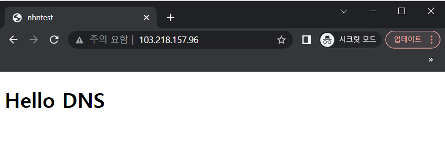 - 도메인 주소와 매핑되는 IP주소는 아래 보이는 웹서버로 지정하였다.