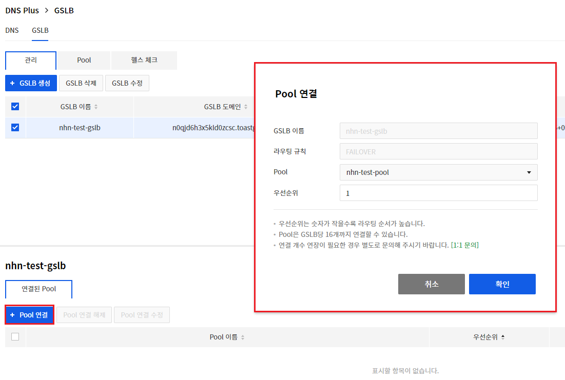 생성된 Pool은 DNS Plus>GSLB>Pool 탭에서 확인할 수 있다.