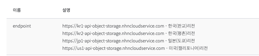 4. 엔드포인트(endpoint) 정보는 링크< 페이지에서 확인할 수 있습니다.