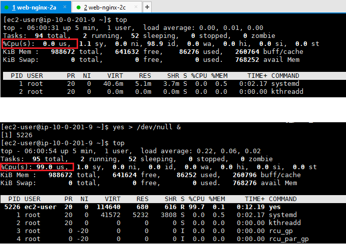 Scale-in 테스트를 위해 실행시켰던 yes 프로세스를 종료 후 Scale-in이 되는지 확인합니다.
