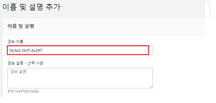 아래 캡처 화면을 참고하여 SCALE-OUT 알림 생성을 진행합니다.