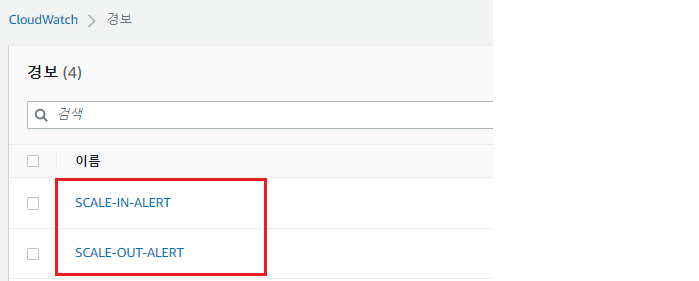 Scale Out과 Scale In에 대한 알림 설정 입니다.