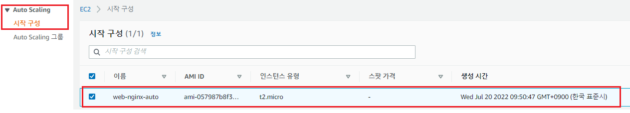 EC2 > Auto Scaling > 시작 구성 메뉴로 이동합니ㅏㄷ.