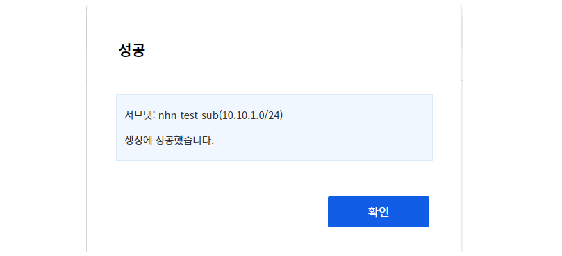 서브넷이 위치할 VPC 및 CIDR를 지정한 뒤 확인 버튼을 선택해 서브넷 생성을 완료한다. 생성 된 서브넷은 기본 라우팅 테이블에 자동으로 연결된다.