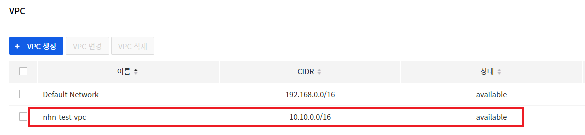 생성한 VPC는 VPC 목록에서 조회 할 수 있다.