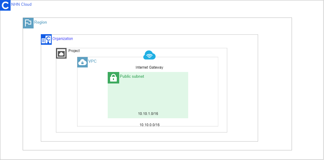 VPC(Virtual Private Cloud)는 말 그대로 가상 사설 클라우드로 NHN Cloud 내에서 논리적으로 독립된 가상 네트워크이다. 각각의 VPC는 완전히 독립된 서브넷, 라우팅테이블, 게이트웨이의 구성 및 제어가 가능하고 NHN Cloud의 리소스를 운영할 수 있다.